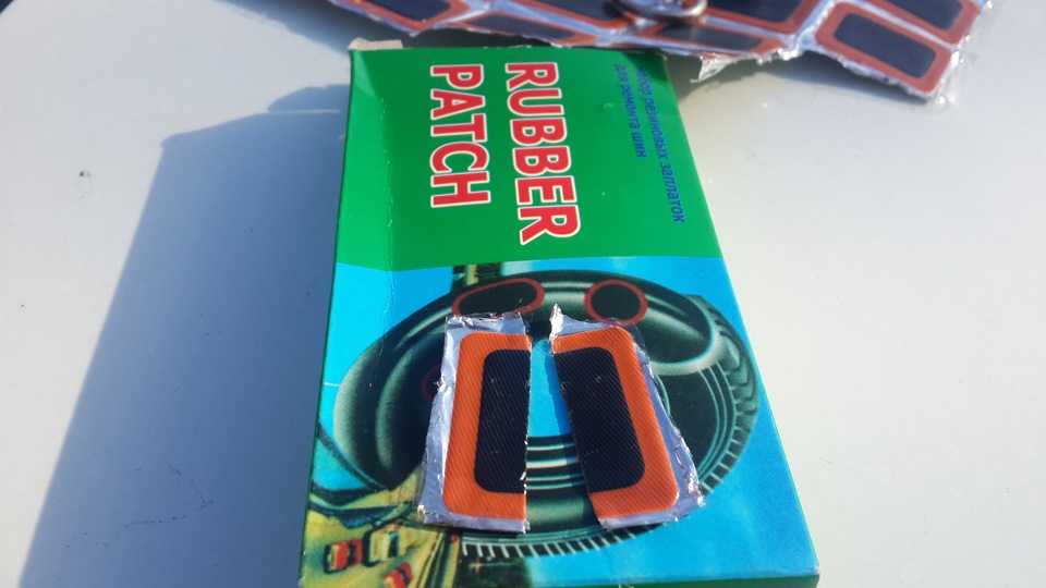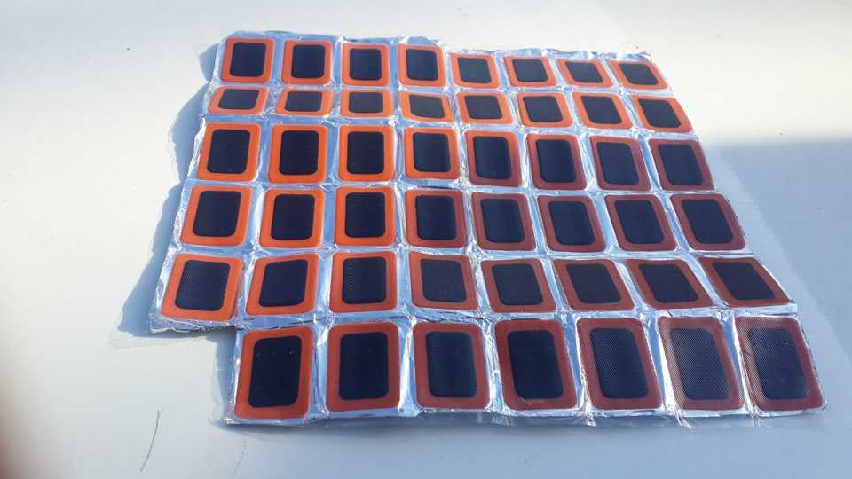 Теперь отрезаем одну заплатку и режем ее на 2 части а нито она большая получается