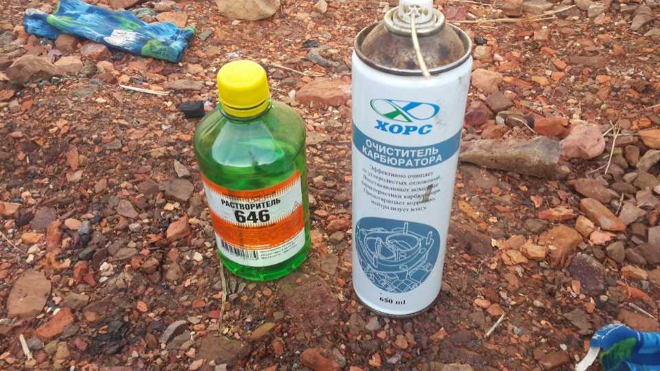 Теперь все обезжириваем очистителем карбюратора или расстворителем