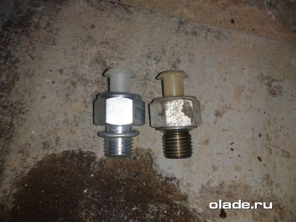 Берем заранее купленный датчик (на фото слева) и той же головкой на 21 вкручиваем его на свое место (аккуратно, не закручивая со всей силы).