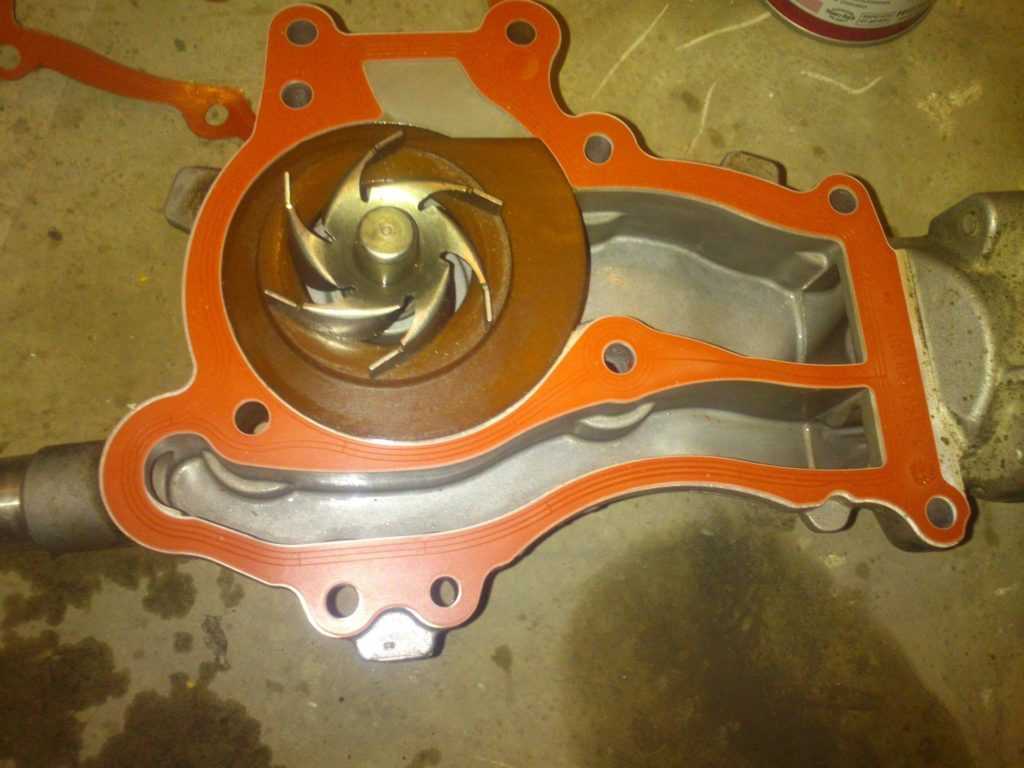 На место посадки, предварительно обрабатанное герметиком, устанавливается новая уплотнительная прокладка. Она меняется при каждой замене насоса, независимо от степени износа.