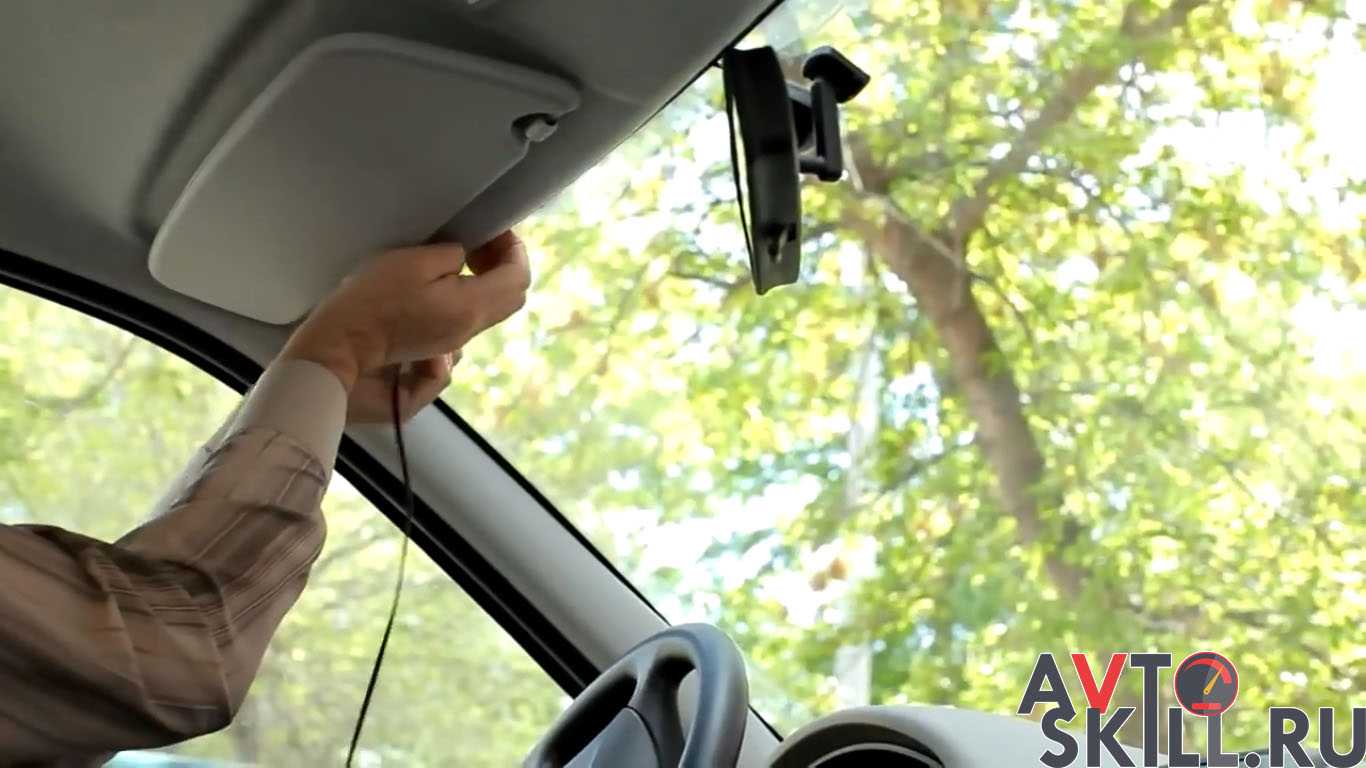 Его установка производится за зеркалом заднего вида, например так, как показано на фото:
