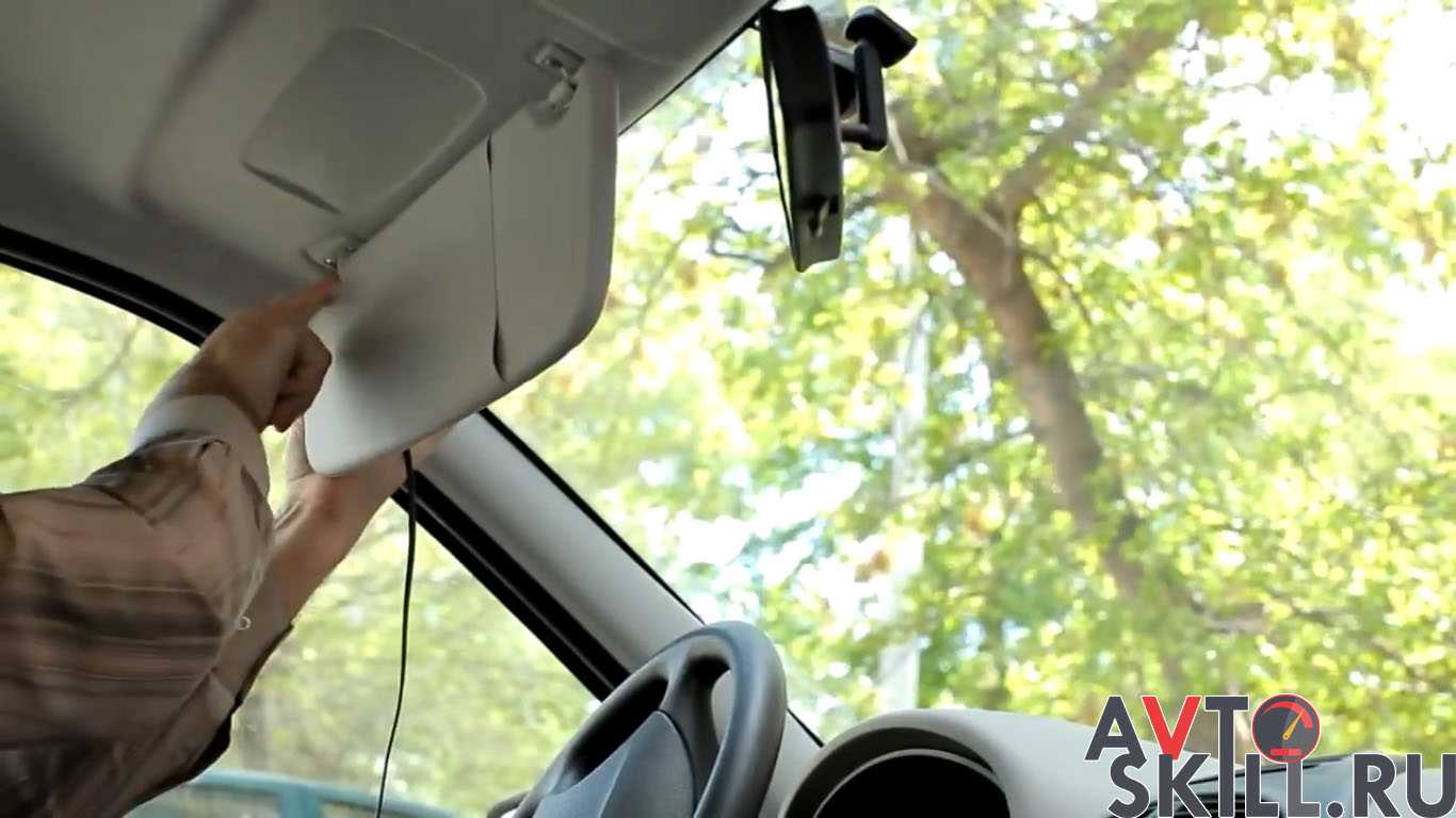 Провод питания можно «спрятать» под обивкой потолка, если место крепления выбрано достаточно высоко. Так провод не будет мешать обзору. Для этого процесса нужна отвертка.