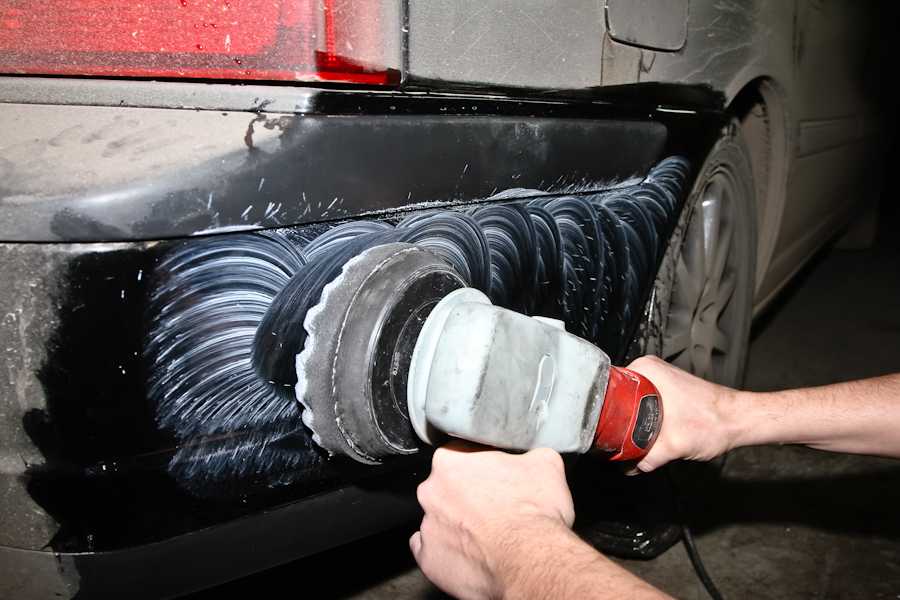 В инвентарь для мойки автомобиля после окрашивания бампера однозначно не должна входить щетка. Даже если у нее будет мягкая щетина, это не гарантирует сохранность лакокрасочного покрытия. Также запрещено применять агрессивную химию, особенно если ее состав включает уксус, силикат натрия, соду.