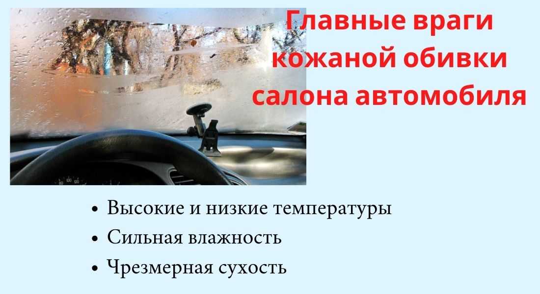 Под влиянием этих факторов поверхность покрывается трещинами. В летнее время вредит солнце, оно сушит кожу. Обработку проводят 1-2 раза в месяц. Зимой негативно действует мороз, от которого обивка становится тверже, утрачивает эластичность. В холодный период обрабатывать нужно раз в 3 месяца.