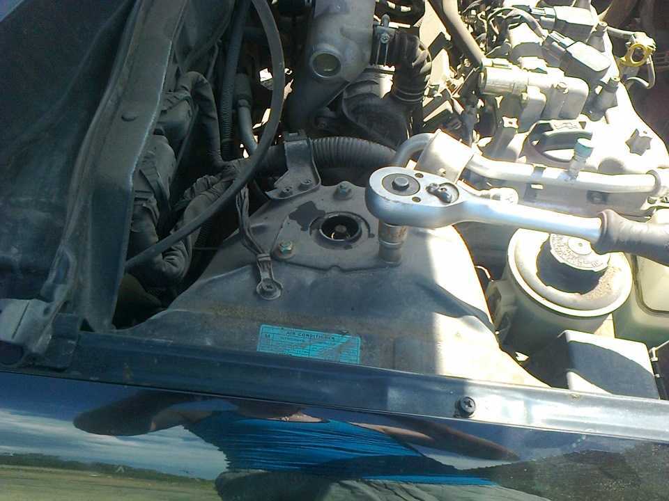 Открутить нижнее крепление. В случае его прикипания, следует обильно использовать WD-40. Многие автовладельцы жалуются на поломку ключей во время попыток срыва с места крепления.