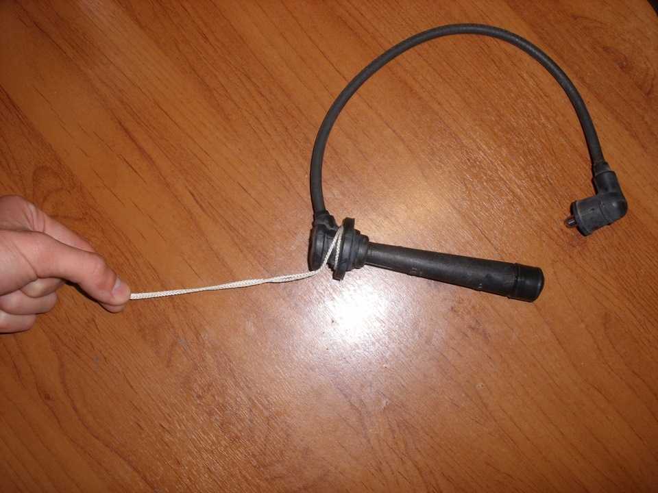 5)Вытягиваем старые ВВ провода из колодцев. Если рукой будет не вынуть – советую петлёй обмотать головку провода толстой ниткой и потянуть;