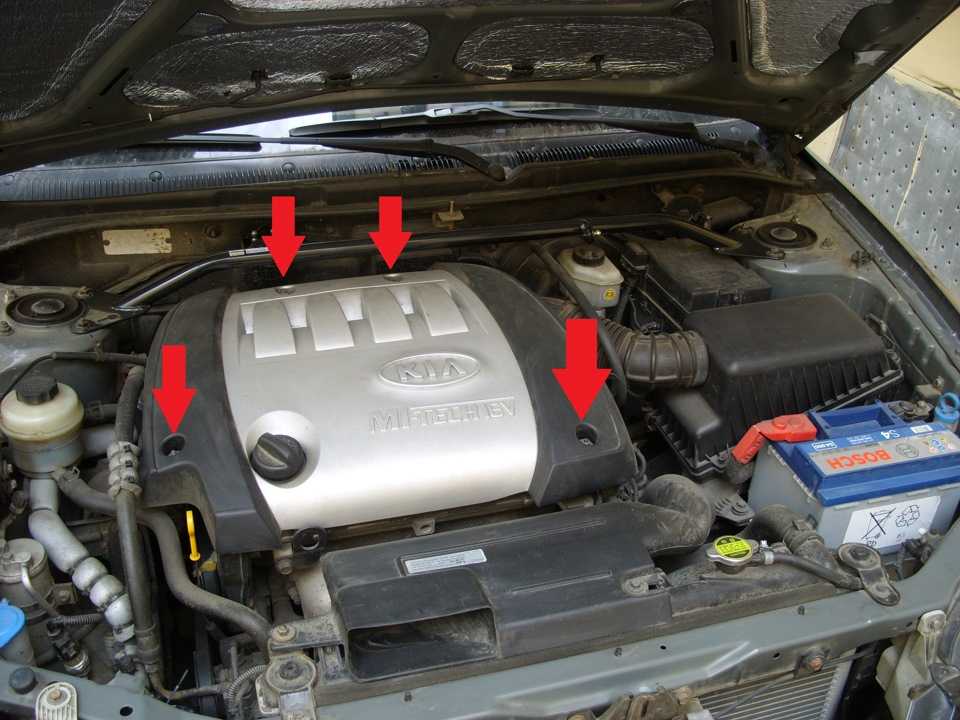 ПРИСТУПАЕМ К ЗАМЕНЕ: 1)Откручиваем декоративный кожух двигателя — 4 гайки, и убираем его куда подальше;