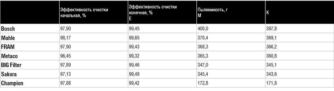 По итогам испытаний лучшие результаты по эффективности очистки показал фильтр Mahle. Все остальные фильтры соответствуют необходимым требованиям. Единственным, кто чуть-чуть не вписался в норматив, стал фильтр Metaco.