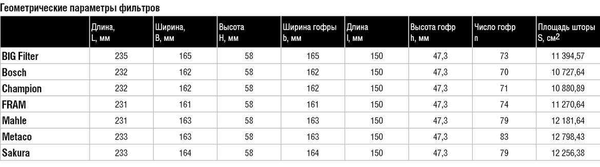 По итогам вычисления площадей фильтрующего элемента видно, что разность достигает 20%. Наименьшую площадь фильтрующего элемента имеет фильтр Bosch, а наибольшую — Metaco.