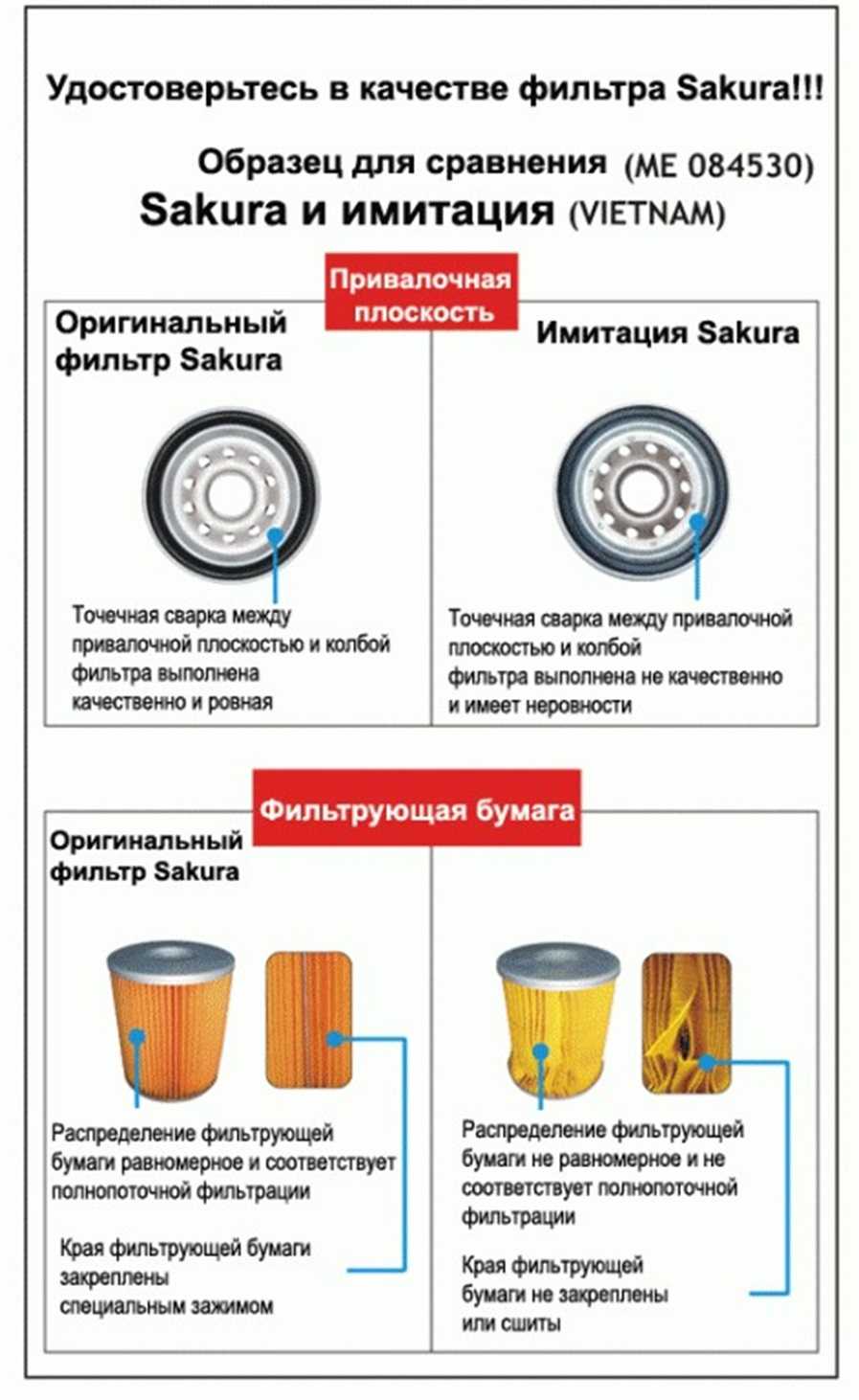 Высокая популярность фильтров Sakura привела к тому, что продукцию компании очень часто подделывают. Фальсификат плохо справляется с возложенными на него функциями. Его установка на автомобиль способна вызвать повышенный износ силового агрегата. При самом неблагоприятном стечении обстоятельств возможно серьезное повреждение двигателя, устранить которое можно только капитальным ремонтом ДВС