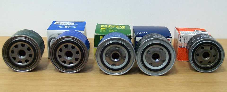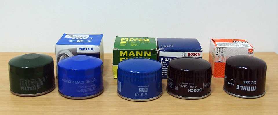 Слева направо: БИГ GB-102М, АвтоВАЗ 2105-1012005-82, MANN W914/2, BOSCH 0 451 103 274, KNECHT/MAHLE OC384.