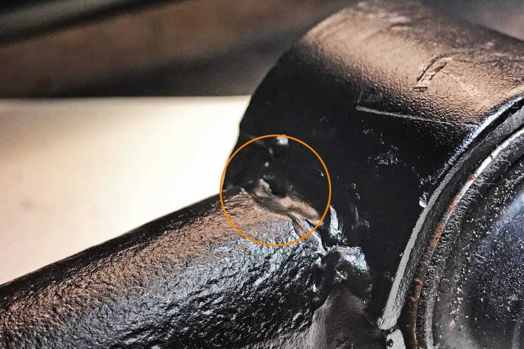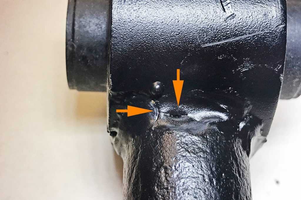А кое-где рядом с непроварами и раковинами встречаются трещины. Тяга достаточно нагружена, если штанга со временем отвалится от обоймы, заднее колесо будет самопроизвольно ехать наружу или вовнутрь.