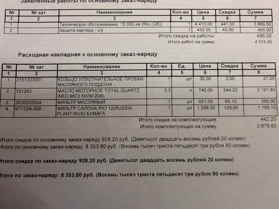 Был 17.02 на то2 …свой масляный фильтр,сделали отметку…Когда записывался отвечала девочка,приехал когда уже мастер,а проводил рабочий…тоже просил фильтра на двс и салонный не трогать… всё включили в стоимость…я от такой цены 8600 охренел…за что…масло у них брал…норма часов у них дорогая…взяли за всё и за фильтра тоже… как сказали положено смотреть и делать мы делаем…ОД в Омске барс …Это я ещё тормозную жидкость не менял…так бы было 9300.