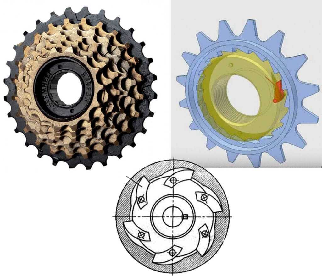 Пример работы муфты свободного хода Муфта свободного хода с храповым механизмом в задней звездочке велосипеда