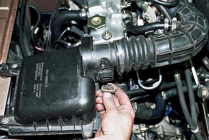 - Необходимо открыть капот, отключить расходомер, закрыть капот.