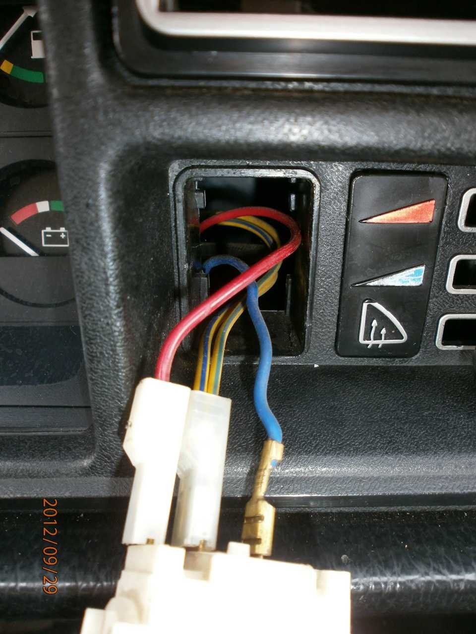 Вы проверили предохранитель и увидели, что он цел. Копаем дальше. Теперь берём и достаём кнопку переключения скоростей из панели и отсоединяем от неё провода. После, подключаем надёжно к массе один конец лампочки индикатора, а второй конец поочерёдно засовываем в снятые колодки проводов отключённых от кнопки. При этом должно быть включённым зажигание!