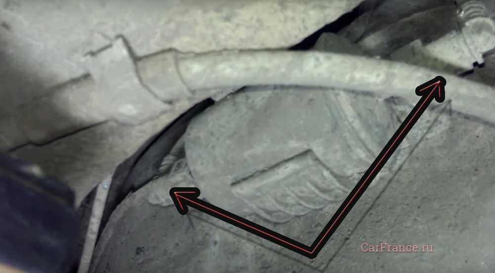 - Далее, следует перебраться под автомобиль, чтобы слить отработку. Для этого необходимо открутить сливную пробку. С помощью ключа выкручиваем сливную пробку