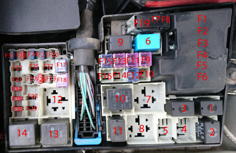 2. Откройте капот, и сбросьте давление в топливопроводе: в блоке предохранителей извлеките предохранитель топливного насоса Мазда 3 F24/15А (F/PUMP).