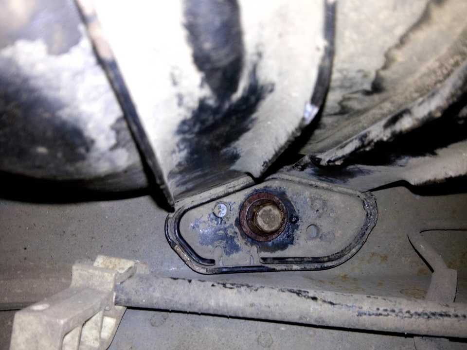 Затем переходим к задней части автомобиля. Топливный фильтр на Мазда 3 будет расположен в районе заднего правого колеса, однако для свободного доступа к элементу необходимо сначала демонтировать защитный пластикой щиток, который фиксируется на 2 болтах;
