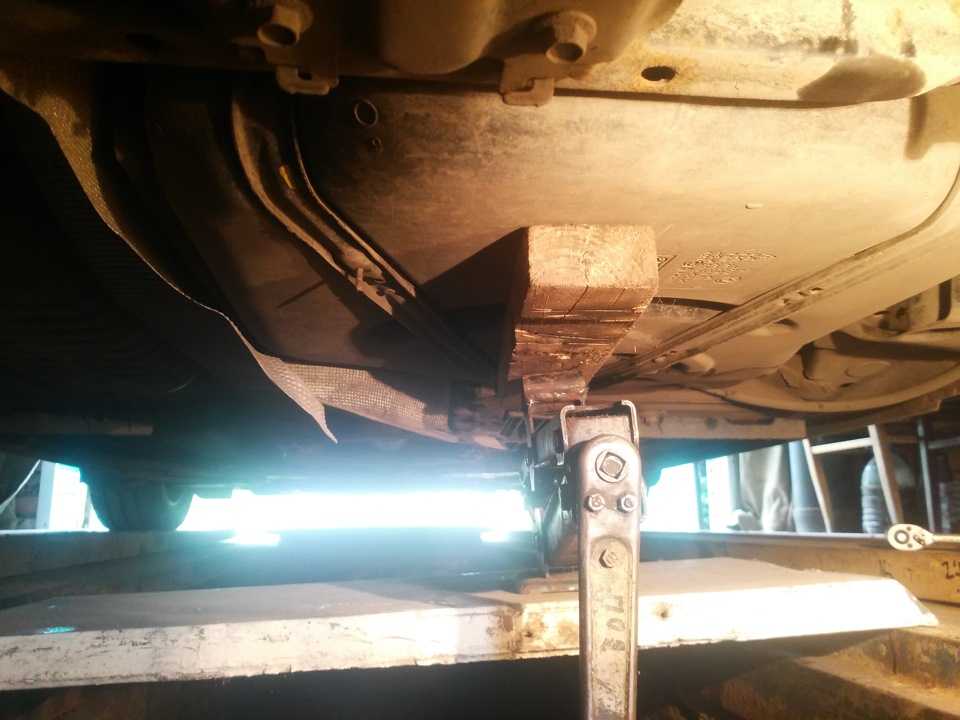 1. Установите автомобиль на яму или эстакаду. Если такой возможности нет, просто вывесите задние колеса.