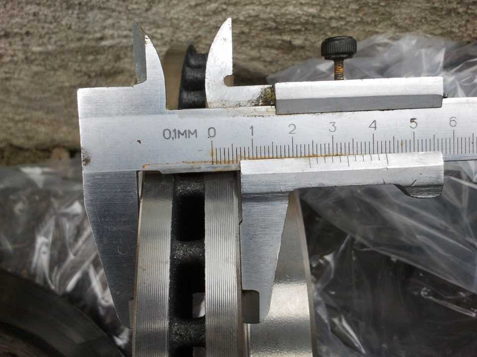 4. Измерьте толщину тормозного диска. При необходимости, замените тормозной диск (стандартная толщина 22 мм., минимальная толщина 20 мм).