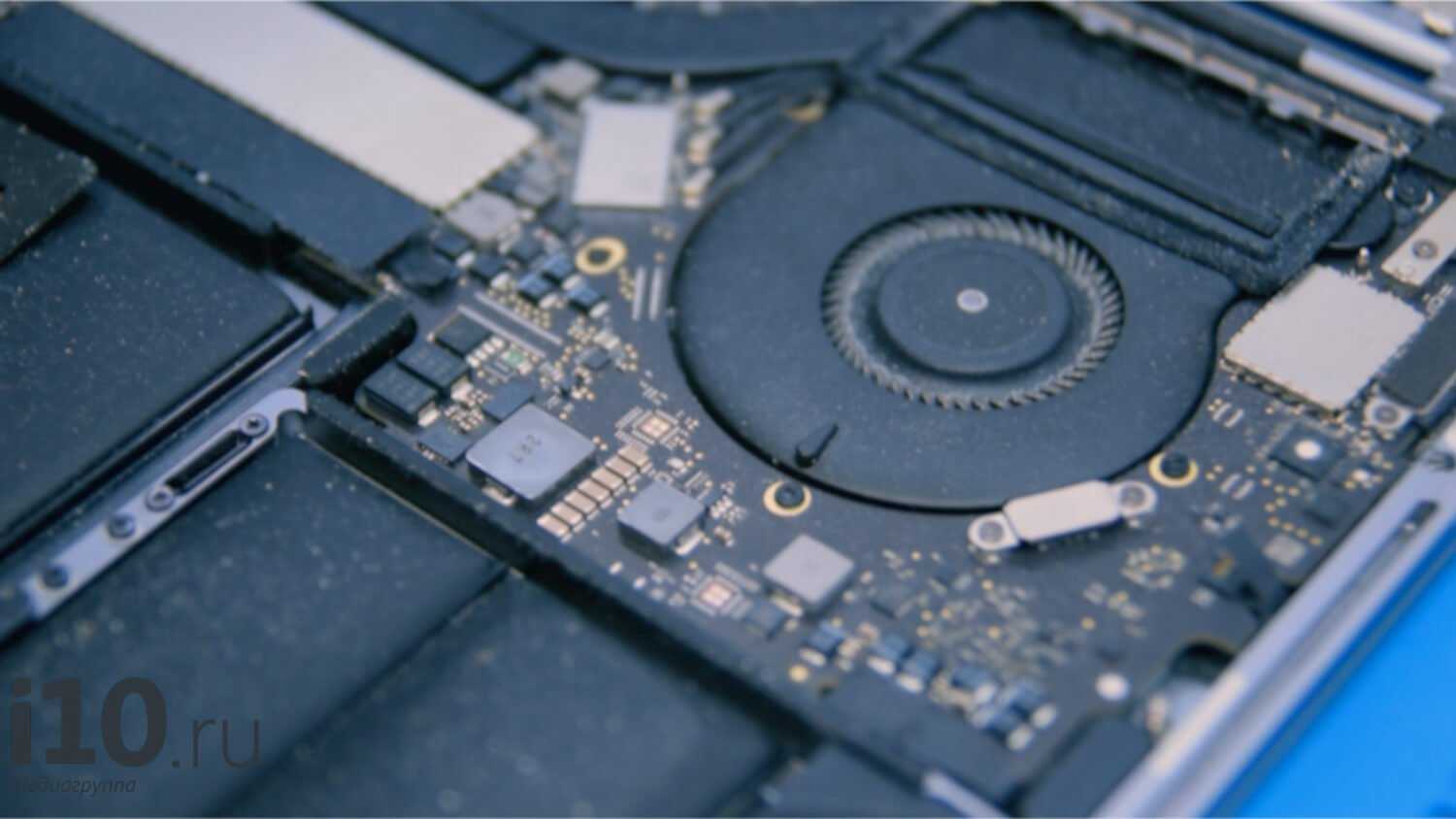 Специалисты снимают заднюю крышку ноутбука для доступа к аккумулятору и обнаруживают, что батарея действительно начала вздуваться, и хотя пока не так сильно, как могло бы быть, аккумулятор необходимо заменить. Кроме того, на плате и вентиляторах просто огромное скопление были и грязи. Да, эта грязь сказывается на работе и производительности MacBook (перегрев может быть опаснее выхода из строя аккумулятора).