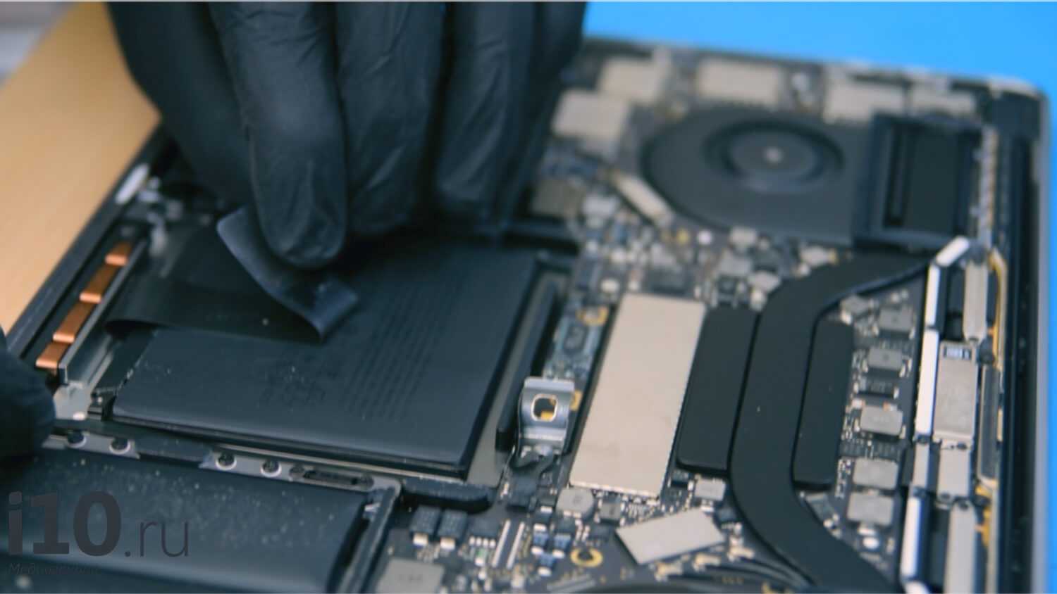 Убедившись, что остальные компоненты не пострадали, они аккуратно отключают аккумулятор от материнской платы.