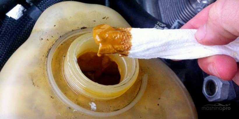 на масляном щупе, а в расширительном бачке – рыжий тосол. Однако