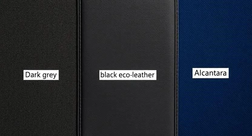 - Алькантара: Премиальный внешний вид, мягкость, долговечность.