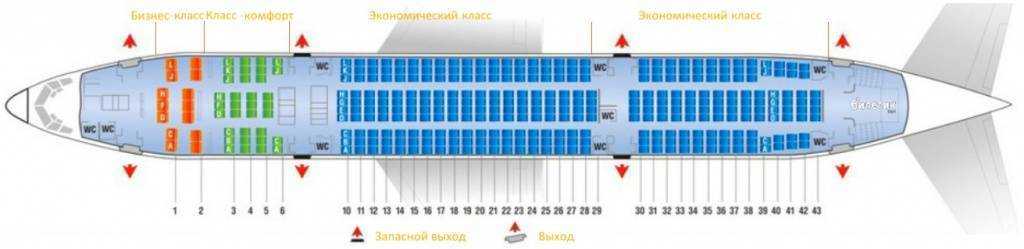 Расположение и нумерация мест в салоне, схема посадочных мест в самолете Boeing 777-200ER. Лучшие и менее комфортные места в самолете