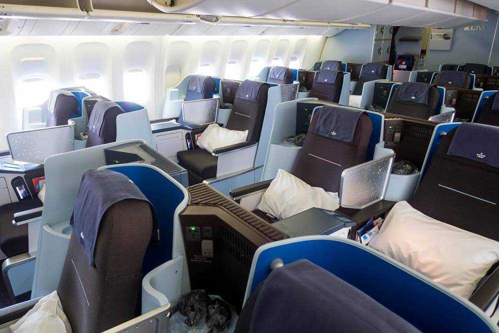 Салон Мирового бизнес-класса в самолете Боинг 777-200 ERавиакомпании KLM. Фото: knaviation.net