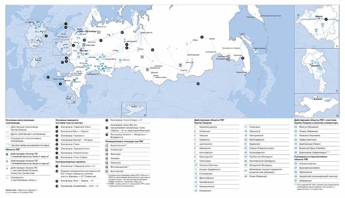 Основные активы и проекты Группы «Газпром» в транспортировке и подземном хранении газа