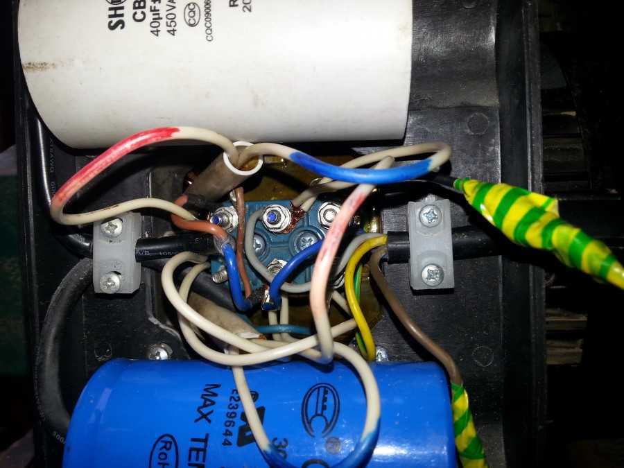 - Из четырех проводов, выходящих из коробки мотора, выясните, какие из них соответствуют отводкам пусковой намотки.