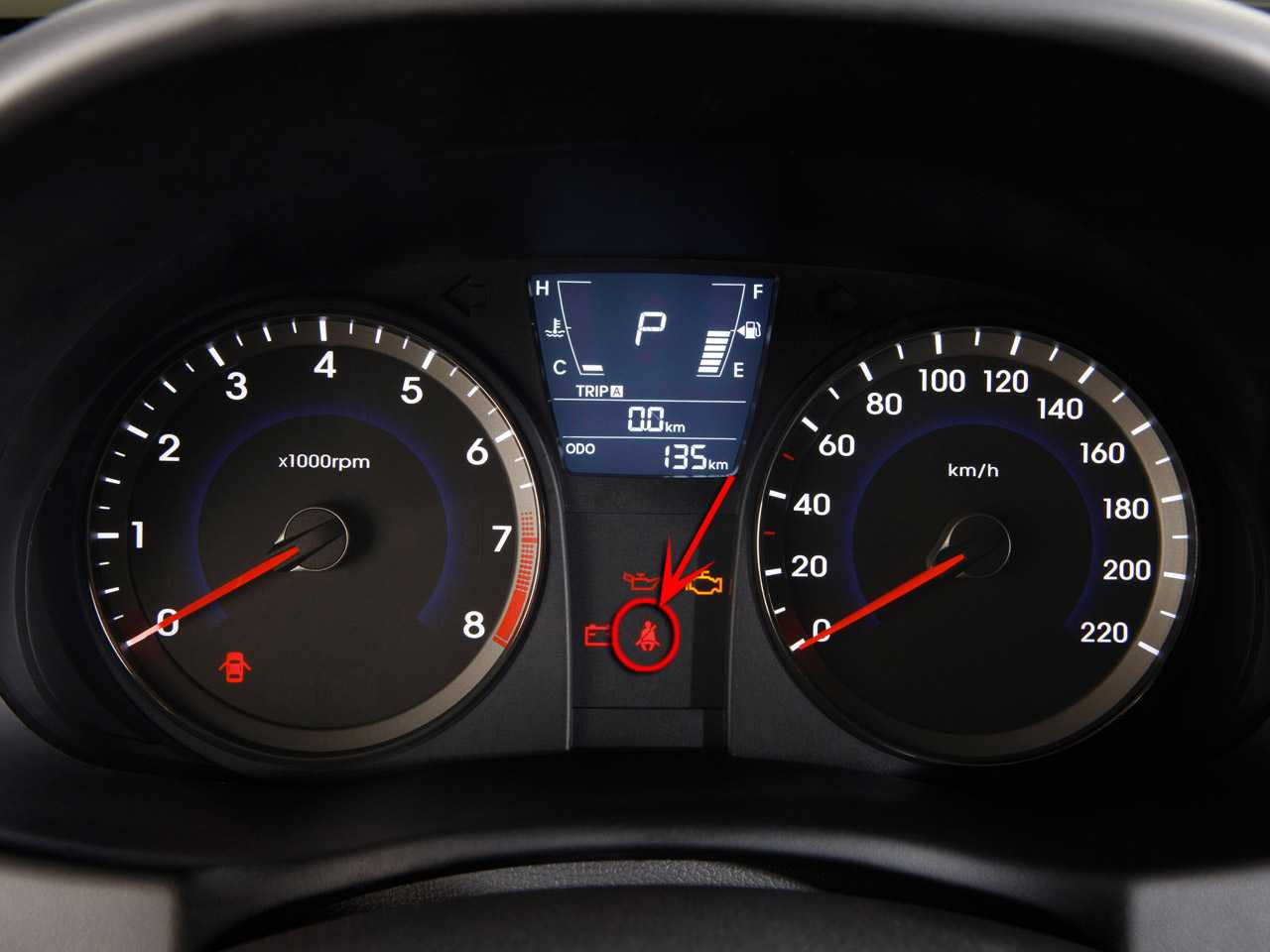 Контрольная лампа антиблокировочной системы тормозов (ABS) в Hyundai Solaris (при наличии)