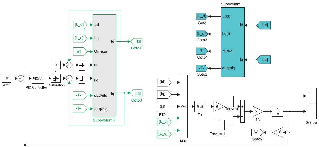 Рис. 13. Модель электропривода с МСРИМ во вращающихся d,q координатах