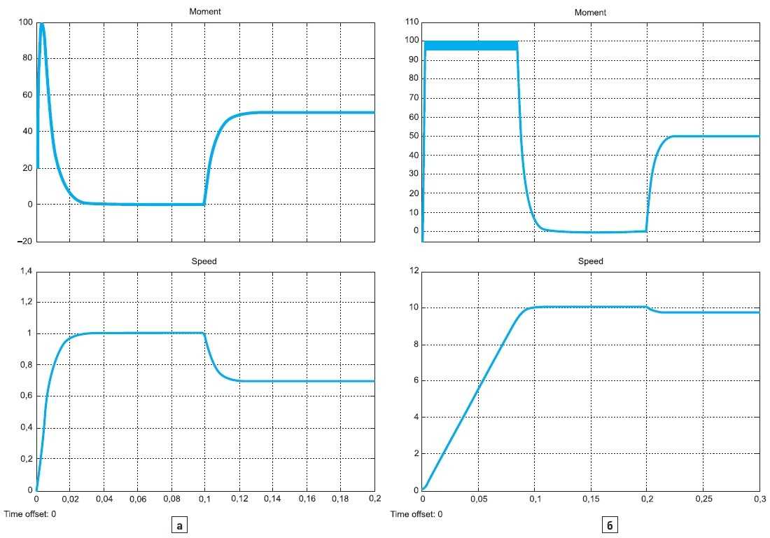 Результаты моделирования переходных процессов по моменту и скорости в МСРИМ приведены на рис. 12.
