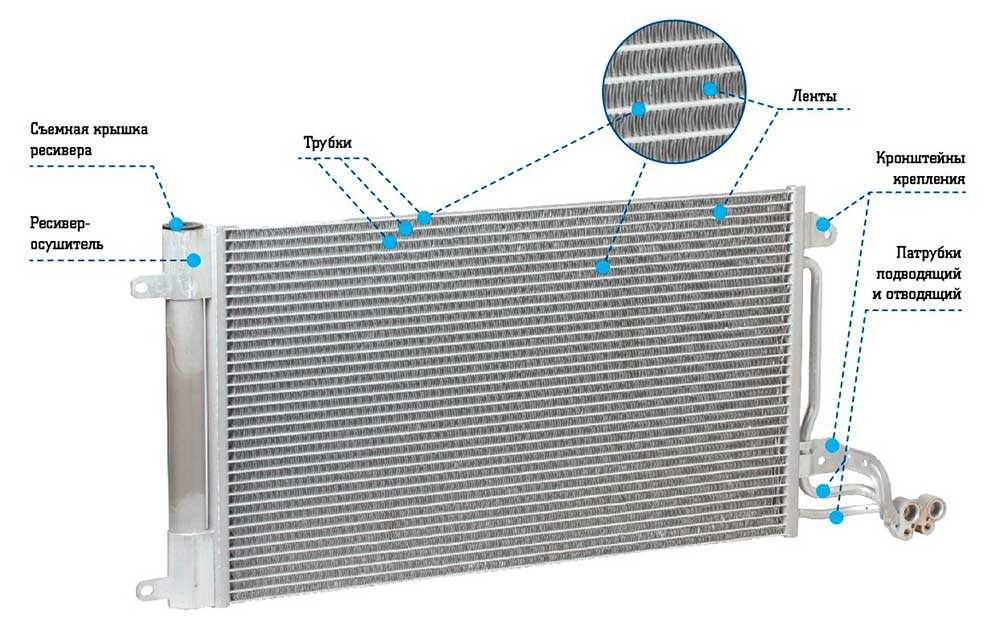 - Радиатор-конденсор (не путайте с радиатором охлаждения двигателя).
