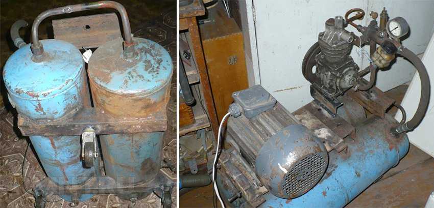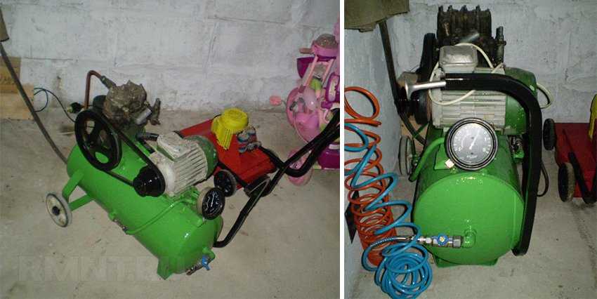 Есть примеры, когда в гаражной мастерской собирался компрессор из двс своими руками с использованием мотоциклетного мотора и старого двигателя от легковушки.