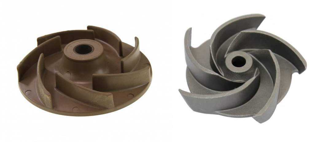 На качество насоса, его вес, прочность влияет материал крыльчатки. Больший вес позволяет работать с высокоплотными средами, но вместе с тем расходует больше энергии электродвигателя. А меньший вес снижает мощность. Металлические детали рабочего колеса способны подвергаться коррозии.