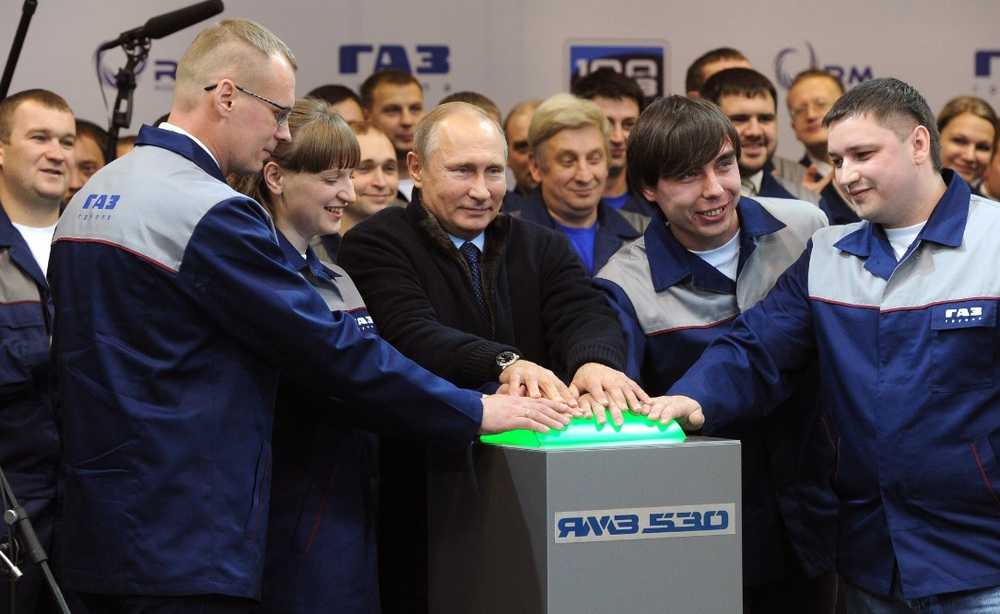 Президент России В.В.Путин на Ярославском моторном заводе в день запуска нового производства. 12 ноября 2016
