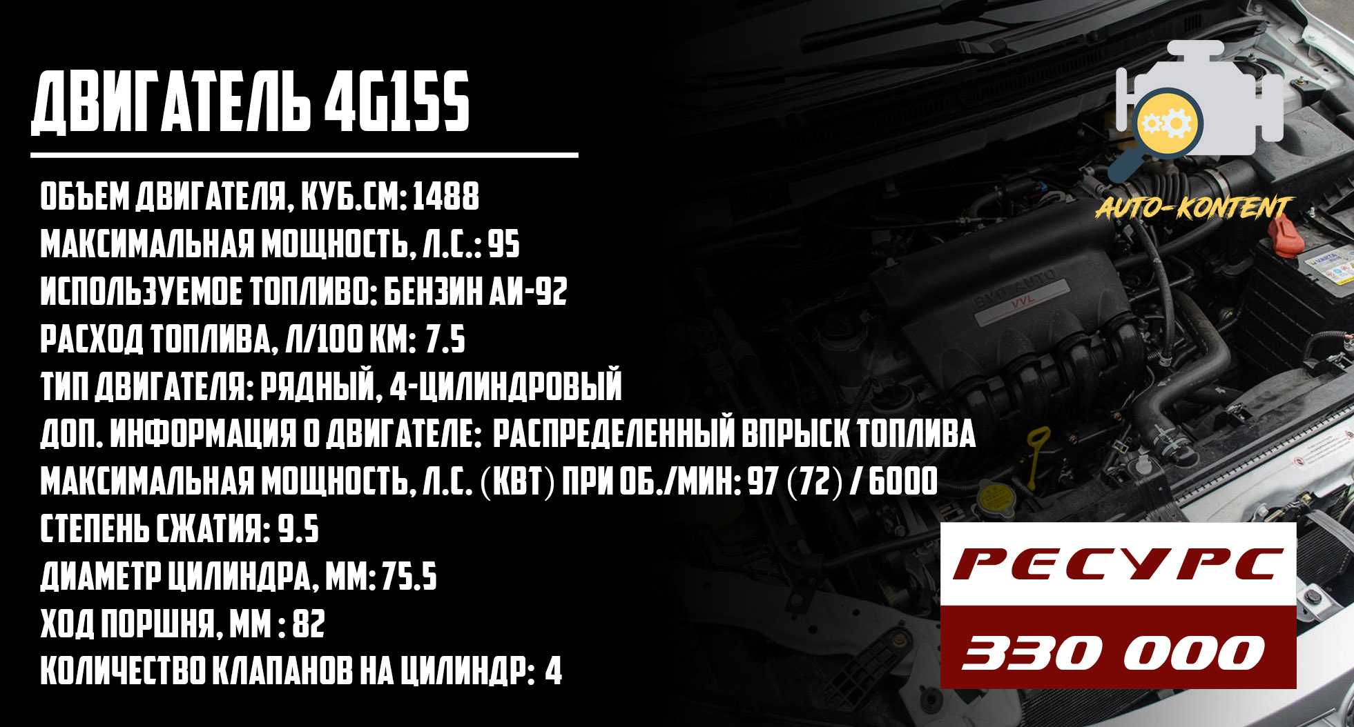 - 4G15S – двигатель с мощностью 95 лошадиных сил, рабочий объем составляет 1488 куб. см, ставился на первое поколение в кузове седан до 2014 года;