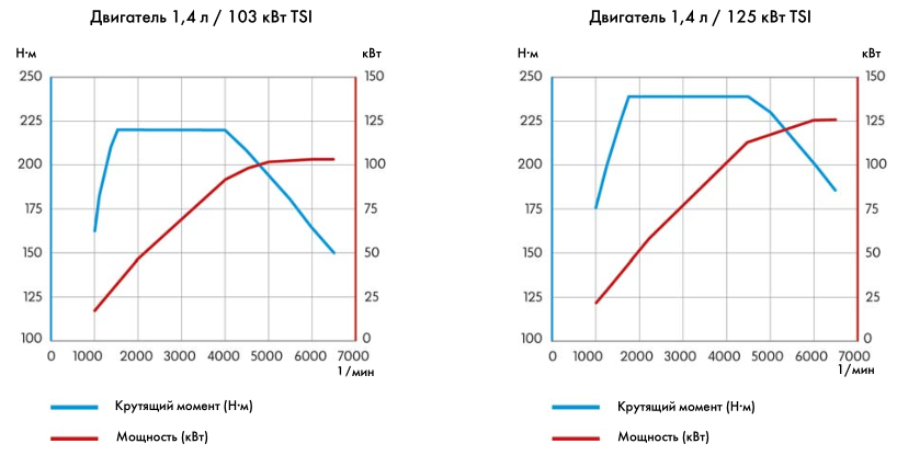 График зависимости крутящего момента и мощности от оборотов на двигателях 103 кВт и 125 кВт