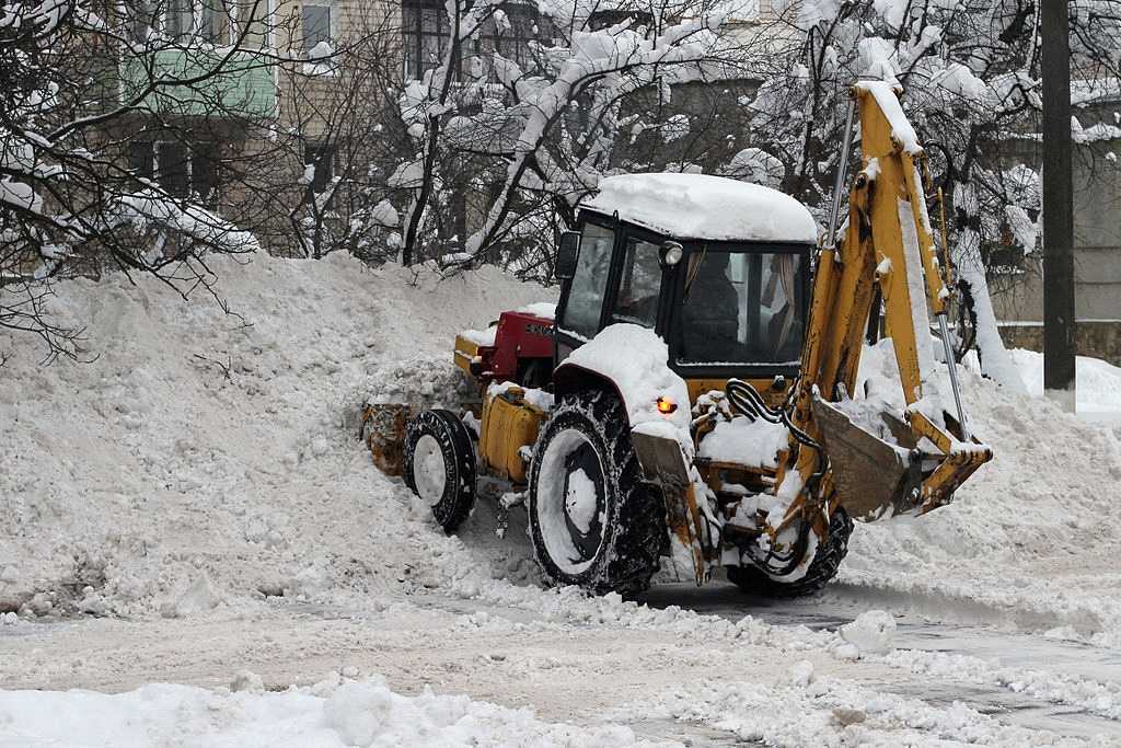 На фото представлен трактор ЮМЗ-6АКМ, выполняющий чистку снега.
