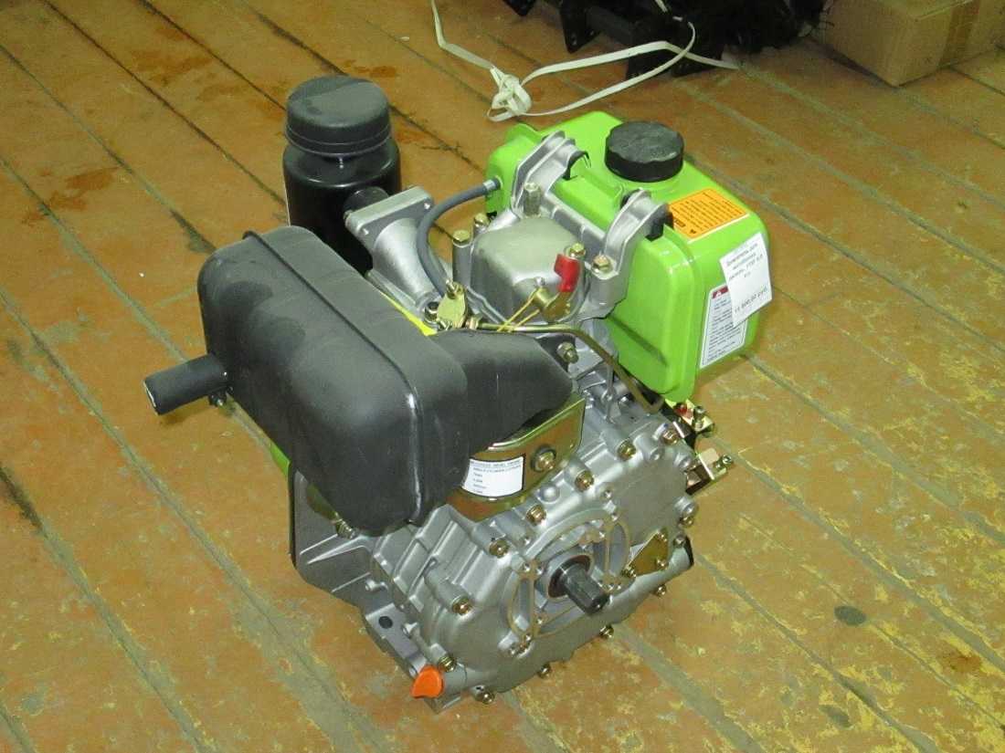 Дизельный мотор на мотоблок, цена которого в зависимости от комплектации составляет 26-34 тысячи рублей. Рабочий объем этих моторов – 211 см3, развиваемая мощность – в районе 4 лошадиных сил. Благодаря смазке коленчатого вала под давлением эти моторы имеют ресурс заметно выше, чем бензиновые, хотя и ощутимо дороже.