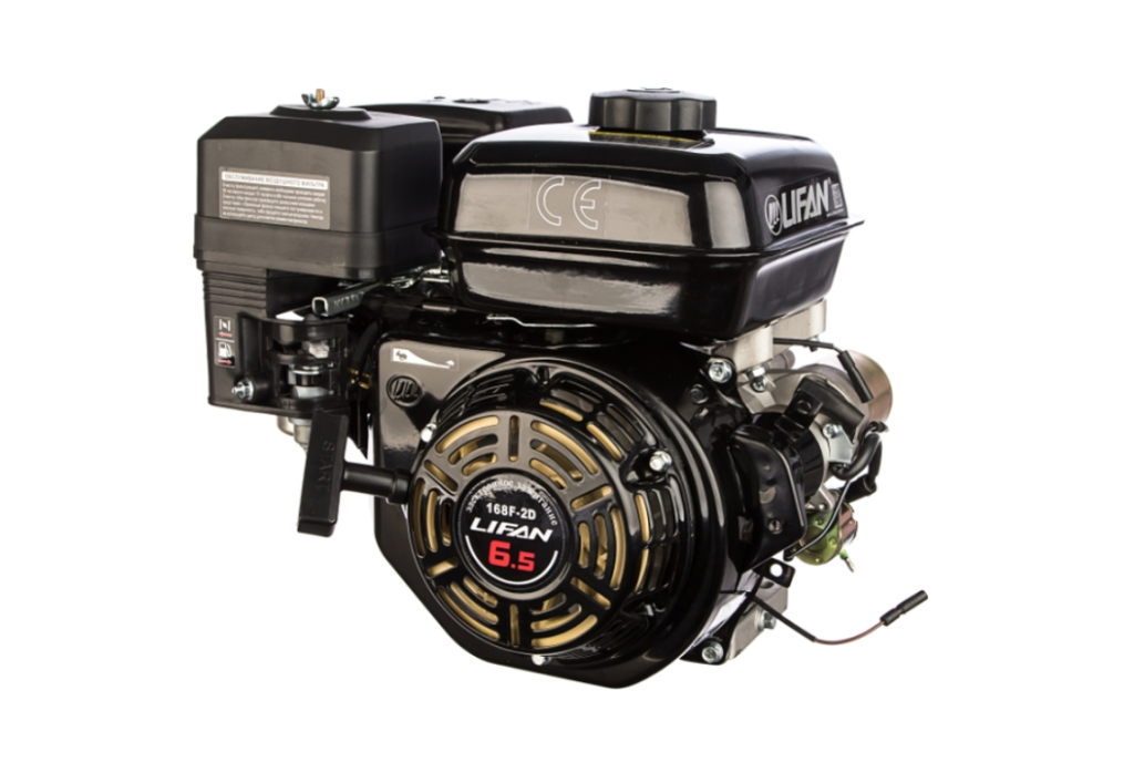 LIFAN 168F-2D – это идеальный вариант для небольших мотоблоков, которые подходят для простых работ сельскохозяйственного направления. Многие дачники предпочитают устанавливать такие двигатели на культиваторы, генераторы и технику. Несмотря на то, что мощность небольшая, составляет всего 6,5 л. с., в топливный бак можно залить 3,5 л бензина, а этого достаточно будет на долгую работу. Для этого двигателя совсем не обязательно выбирать дорогой бензин, подойдет АИ-92.