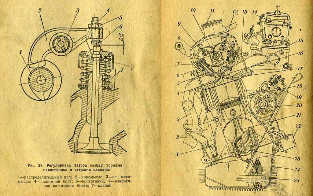 В передней части установлена шестерня привода распредвала и шкив вентилятора, к которому крепился храповик заводной рукоятки, что по тем временам было далеко не лишним. К задней части коленвала четырьмя болтами крепится чугунный маховик. На него напрессован венец для стартера и нанесены технологические метки.