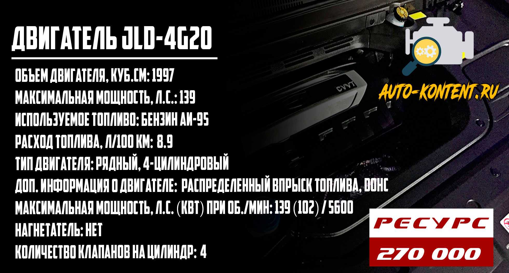 Принято считать, что двухлитровый мотор JLD-4G20 собственноручно собрали китайские инженеры. Но, нет, это не так, мотор является всего лишь доработанной версией японского движка 1AZ-FE. Его четырехрядный блок цилиндров изготовлен из алюминия, китайцы поработали над тем, чтобы облегчить силовой агрегат. Головка блока цилиндров также алюминиевая, 16-клапанная. Газораспределительный механизм с двумя валами и приводом от цепи ГРМ. Цепь достаточно надежная, но в некоторых случаях еще до 100 тыс. км растягивается или перескакивает на один зуб. За японским мотором 1AZ-FE закрепился статус «одноразовости» по причине отсутствия ремонтных размеров поршней, вкладышей. Этот же недостаток свойственен китайскому JLD-4G20.