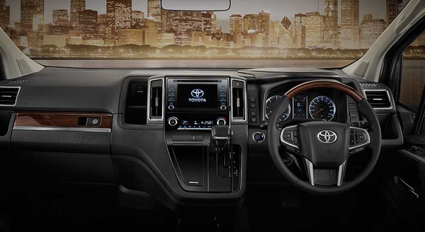 Оснащение Toyota Majesty включает в себя: мультимедийную систему, климат-контроль, адаптивный круиз-контроль, систему автоматического торможения с функцией распознавания пешеходов и велосипедистов. От «обычной» модели Hiace роскошное исполнение отличает также пружинная задняя подвеска, которая заменила рессорную.