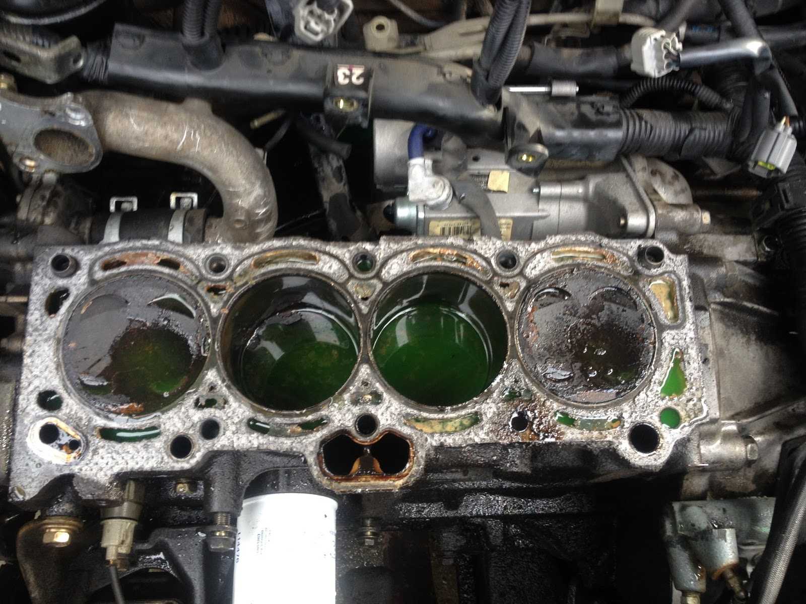 - попадание охлаждающей жидкости в цилиндры ДВС;