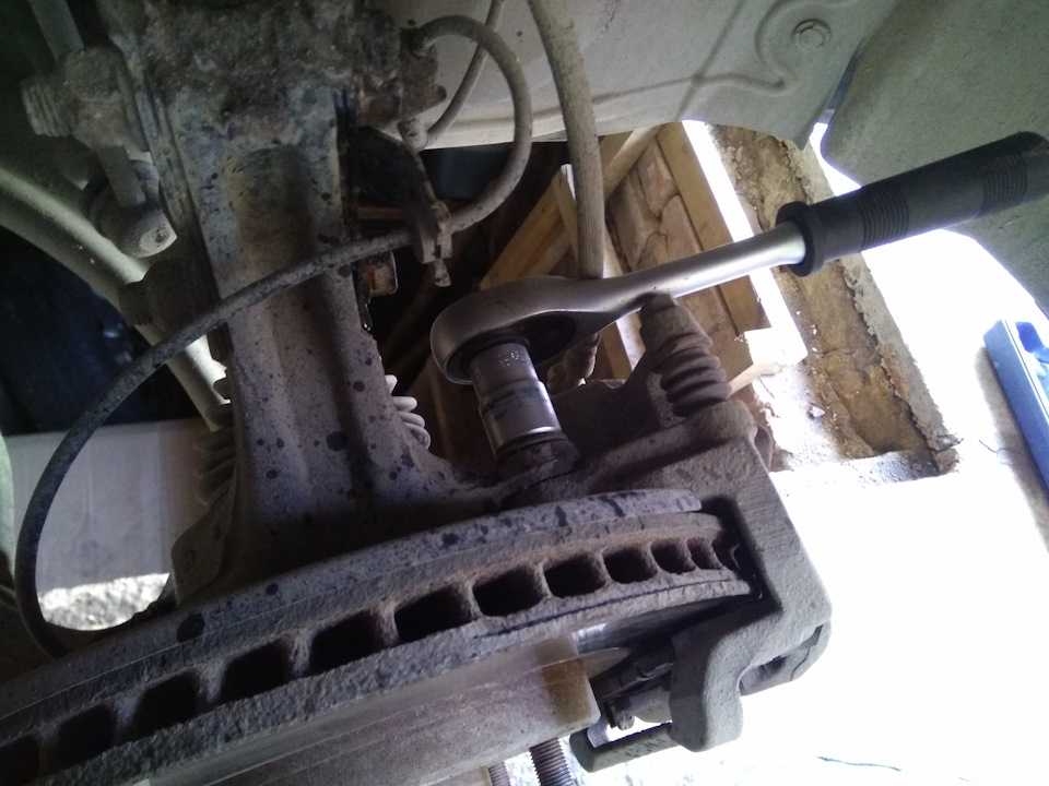 - Откручиваем рулевую тягу, болт ключом на № 14. Предварительно все обрабатывается WD-40.
